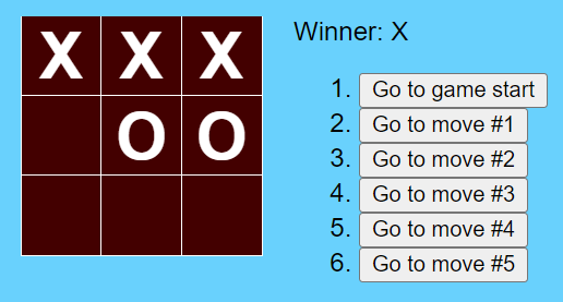 A game of Tic-Tac-Toe built while I was learning to use React. Each piece of the game, such as the board and individual squares, are represented by their own component with their own attributes. Furthermore, the components are also capable of tracking their own state, allowing us to "time travel" to any move made previously.